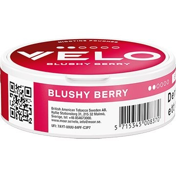 Hãy sẵn sàng để yêu lại từ đầu với VELO Blushy Berry! Loại snus không thuốc lá được thiết kế lại này, ra mắt vào năm 2024, vẫn giữ nguyên hương vị thơm ngon của dâu tây Thụy Điển mà người hâm mộ yêu thích. Được sản xuất bởi BAT, VELO Blushy Berry mang đến một vị trái cây tươi mát sảng khoái trong từng túi dạng thanh mảnh, cung cấp trải nghiệm nicotine cân bằng và thỏa mãn (mức độ mạnh 2/4). Mỗi hộp chứa 20 túi, lý tưởng để bạn tận hưởng lâu dài.